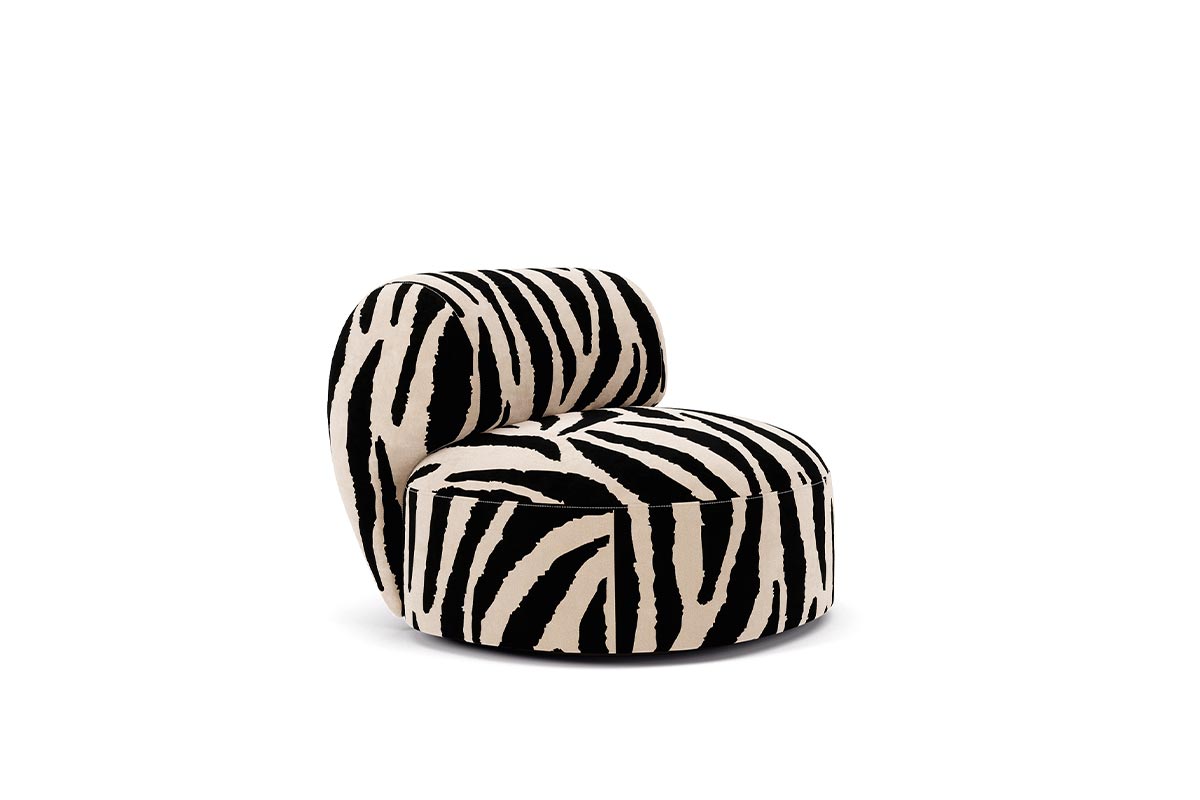 Auf einem unsichtbaren Drehteller aus Aluminiumguss gelagert, entfaltet der Sessel eine ruhige, fließende Dynamik. Die Drehbewegung verleiht ihm eine souveräne Beweglichkeit und verbindet seine skulpturale Präsenz mit einer selbstverständlichen Offenheit zum Raum. So entsteht ein Objekt, das nicht starr wirkt, sondern in Beziehung tritt - mit dem Raum, mit Menschen, mit seiner Umgebung. Diese Beweglichkeit erweitert die klare Form um eine kommunikative Dimension und lässt den Sessel zum lebendigen Mittelpunkt werden, ohne seine innere Ruhe zu verlieren.